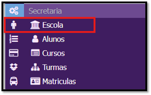 1. Clique menu secretaria e selecione o modulo de Escola;