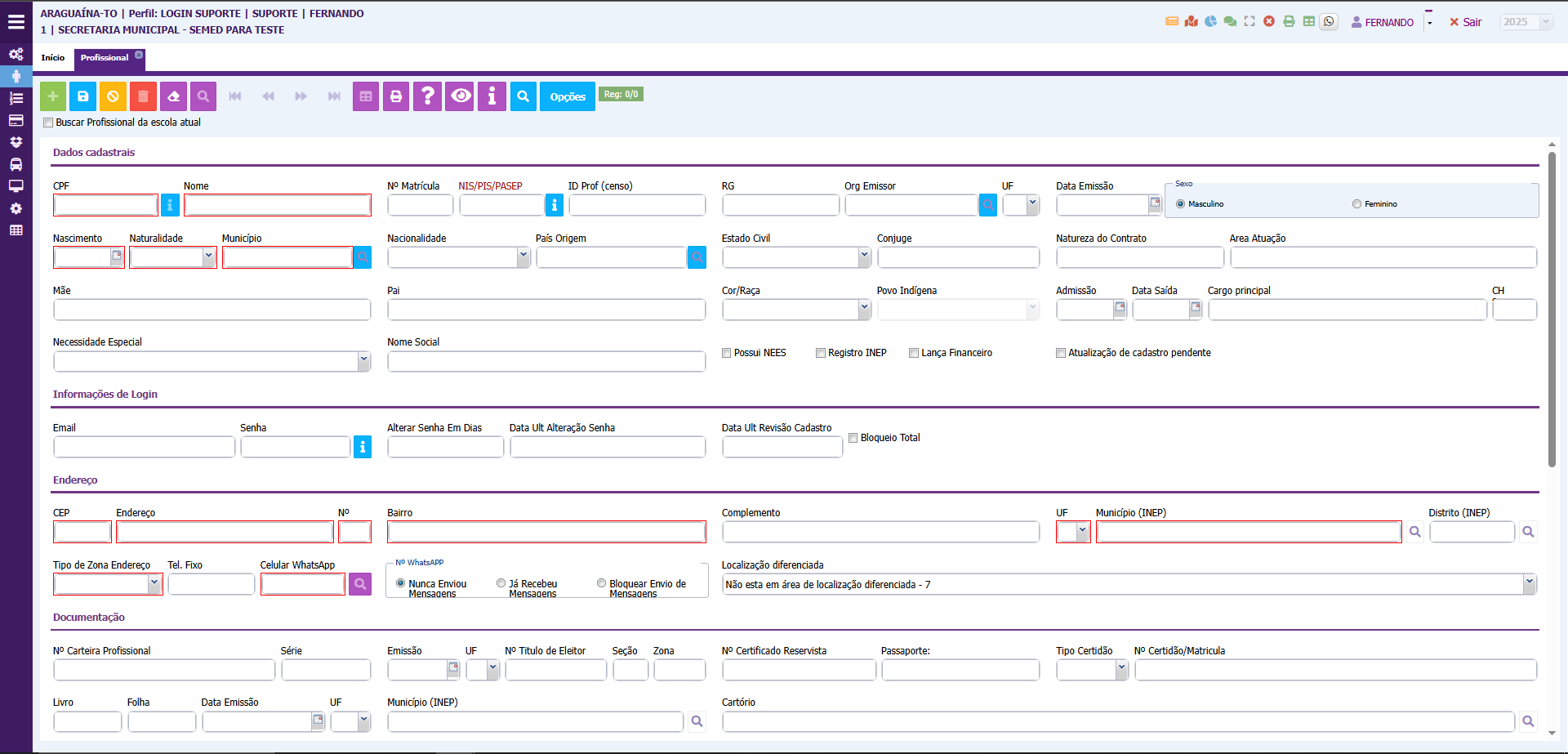 5. Continue o preenchimento dos dados referente a documentação do profissional;