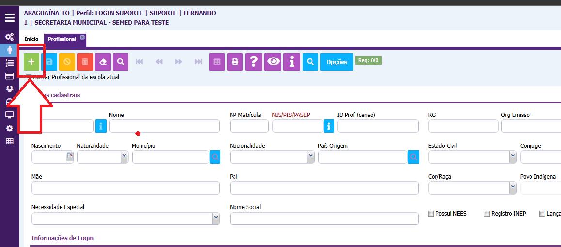 3. Realize o preenchimento dos dados do profissional, os campos em vermelho são de preenchimento obrigatório;