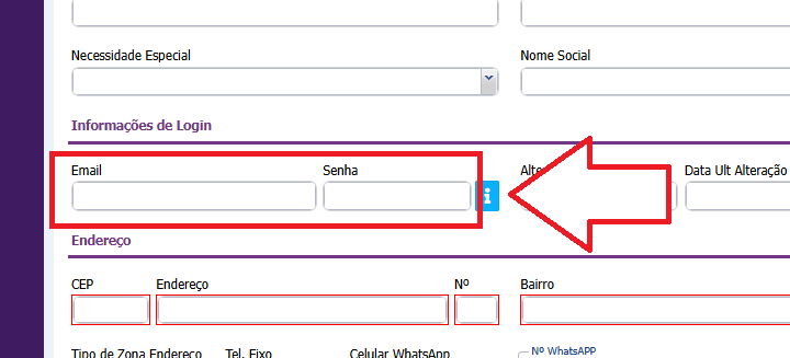 3.1 Após preencher os dados, informe o E-MAIL deste profissional (para recuperação de senha) e insira uma SENHA para acesso ao sistema;