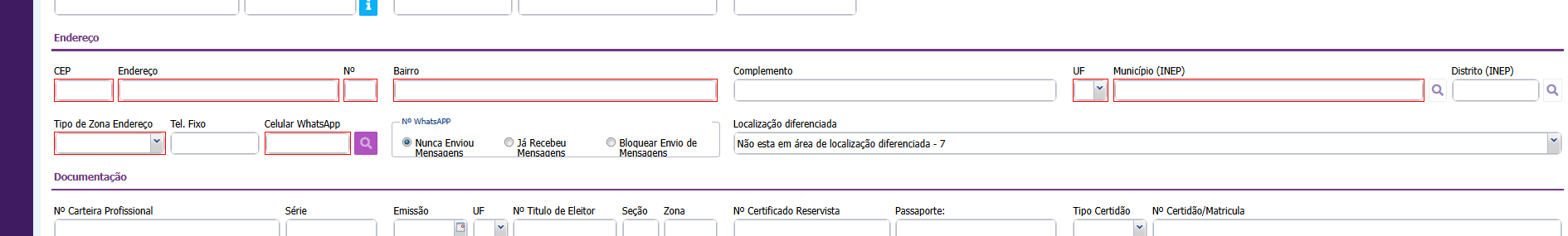 4. Continue o preenchimento dos dados referente ao ENDEREÇO do profissional;