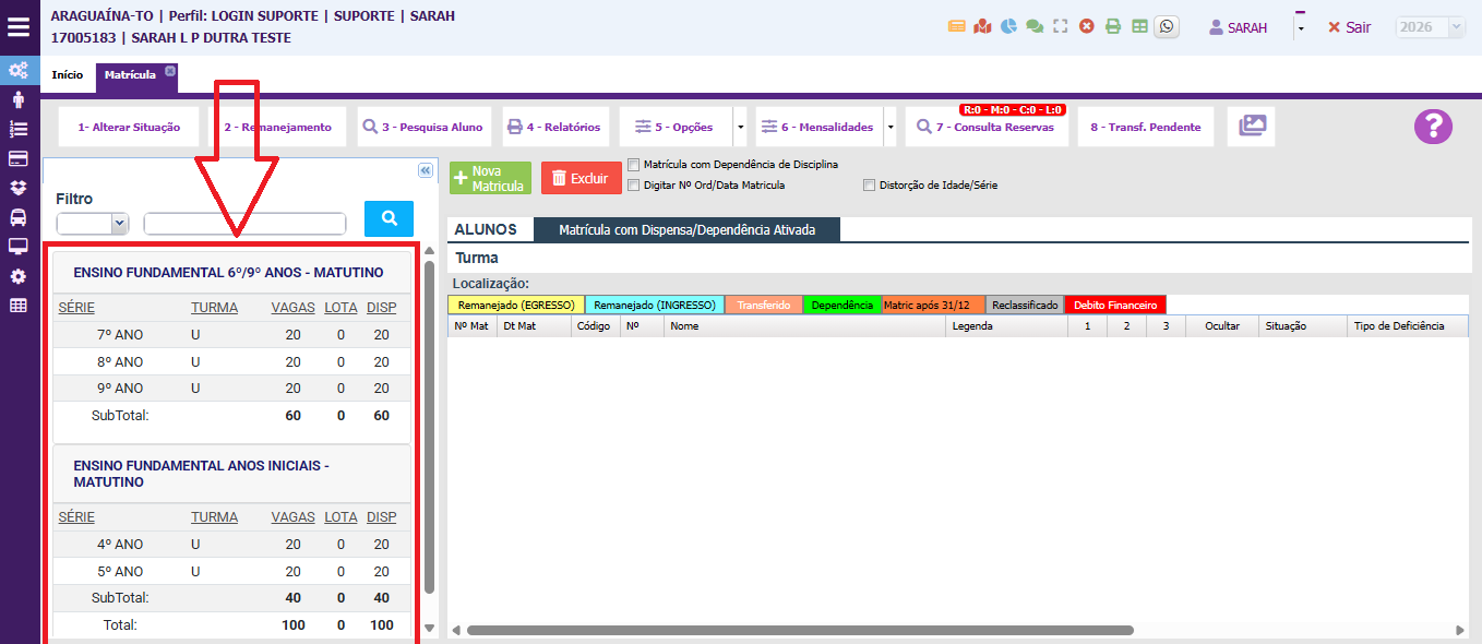 O recebimento da matrícula é necessário para poder concluir o processo de transferência do aluno, ao aceitar a matrícula o sistema automaticamente irá copiar todos os dados do aluno com seu histórico escolar e notas do ano corrente. 1. Primeiramente ...