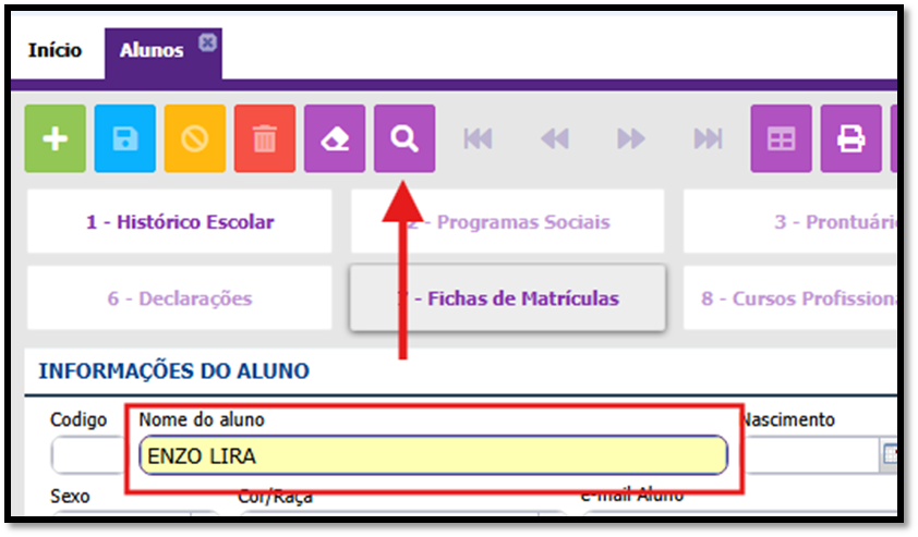 2º. Para fazer o preenchimento, é necessário buscar o aluno;