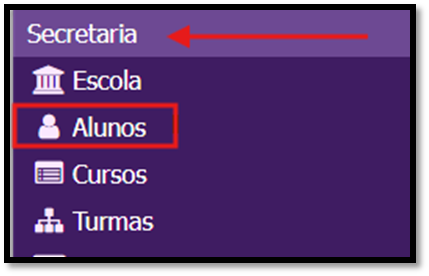 1º. Com o sistema GEP WEB aberto, clique no menu Secretaria, e selecione o módulo de Alunos;