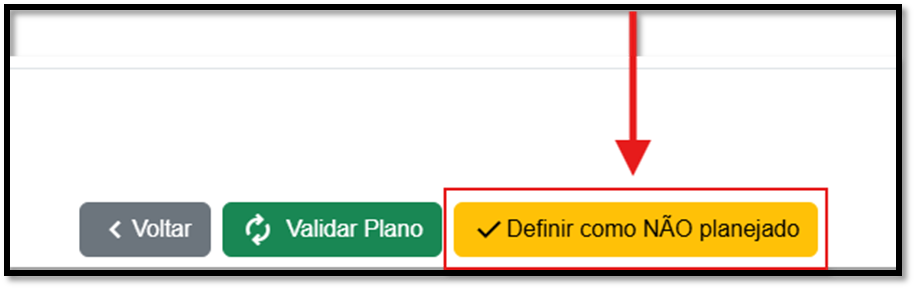 6 - Nesta tela, role até a seção onde estão as opções 'Validar Plano' e 'Definir como Não Planejado'. Em seguida, selecione a opção DEFINIR COMO NÃO PLANEJADO.