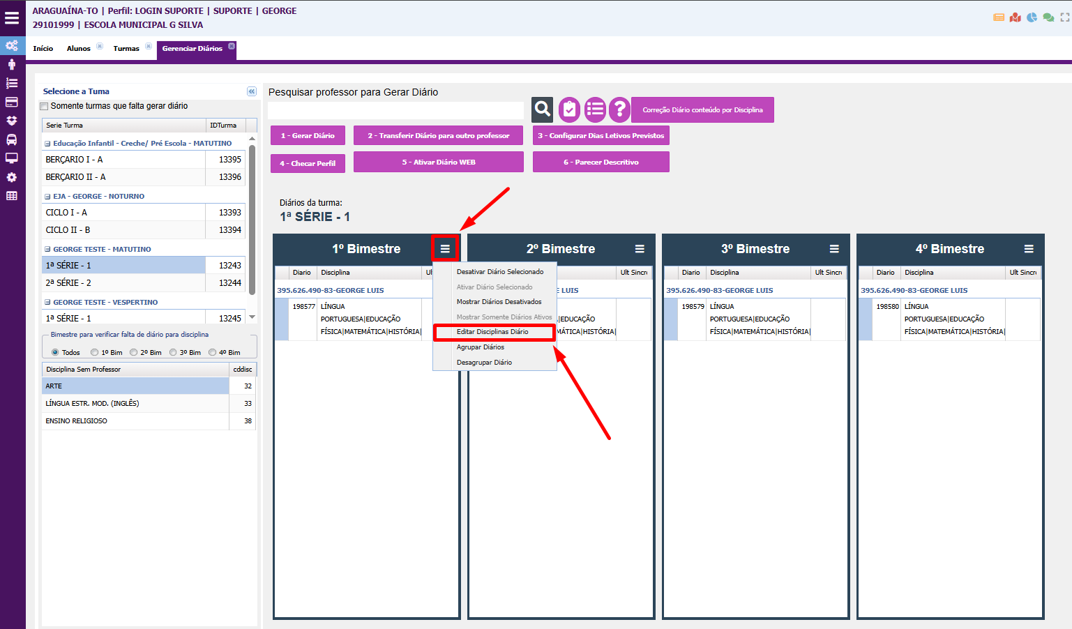 Editar disciplinas do diário 👨🏻🔧
