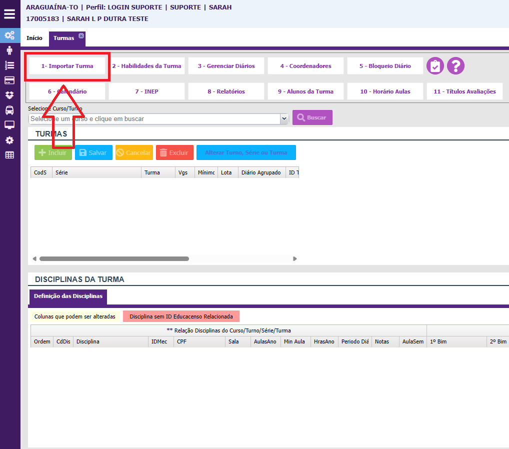 📣 Neste tutorial demonstraremos como realizar a importação de turmas do ano anterior, siga os passos abaixo para realizar o processo.- Antes de continuar verifique se já incluiu os cursos na escola, caso contrário clique aqui e saiba como incluir o curso na escola;