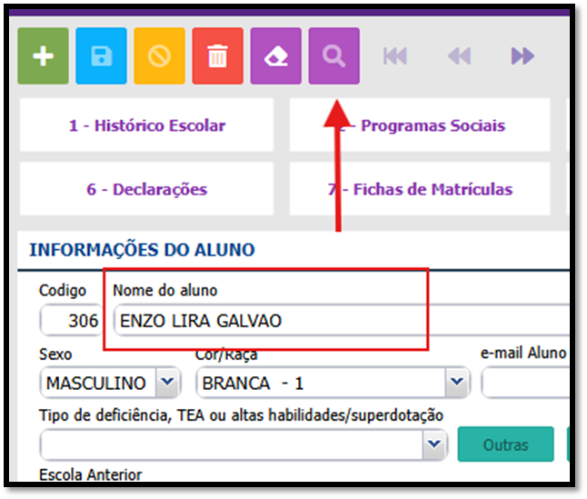 2º. Para fazer o preenchimento, é necessário buscar o aluno;
