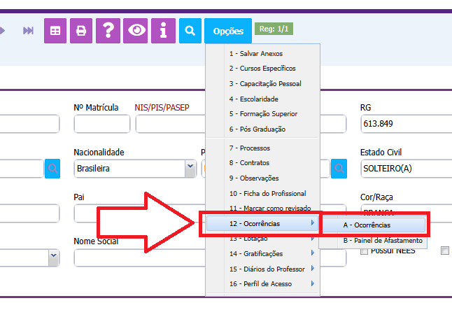 4º. Selecione a opção 12 - OCORRÊNCIA , como é mostrada na imagem;