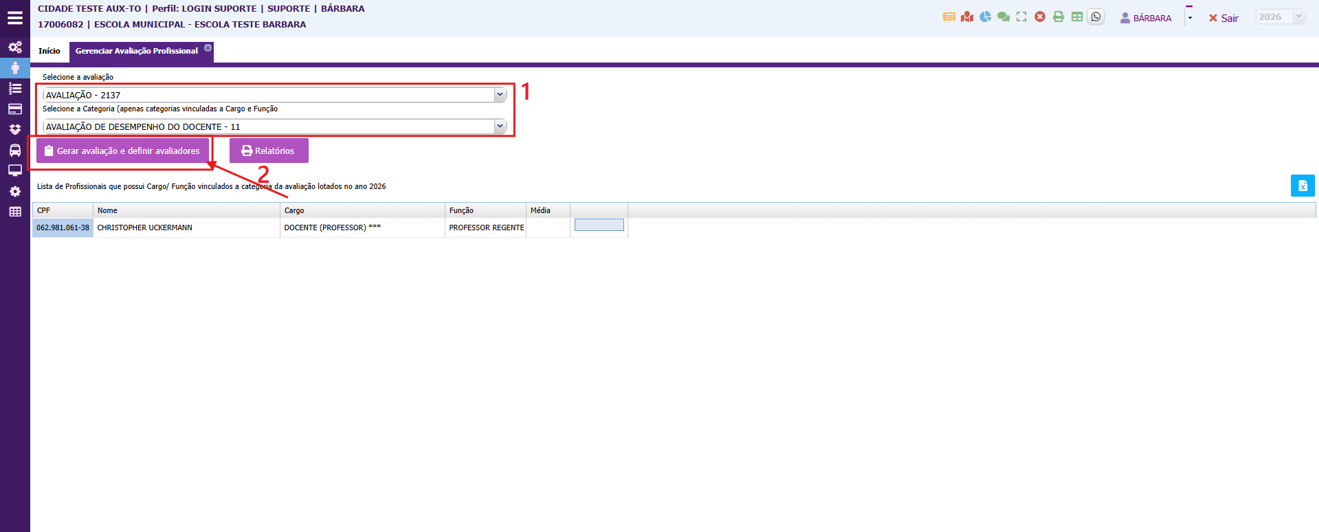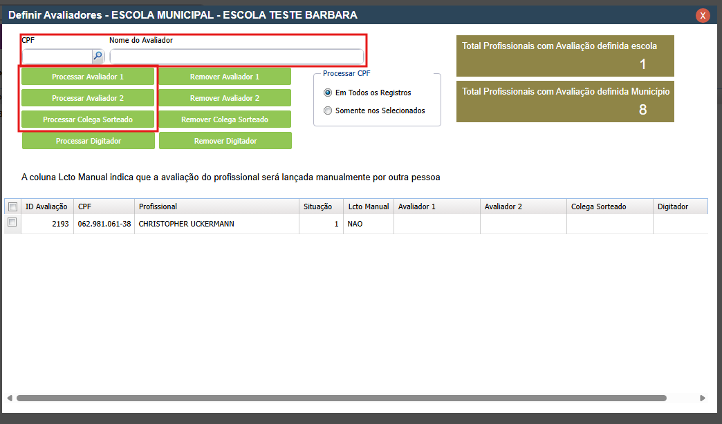 - Em seguida, pesquise o AVALIADOR 2 e clique no botão processar avaliador 2;