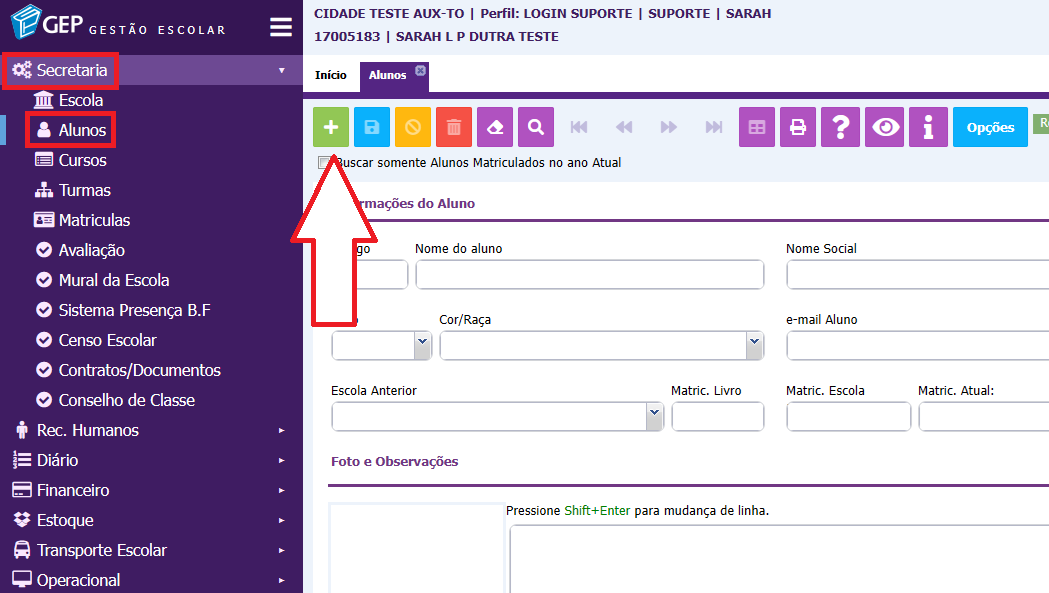 para salvar. Assim, o cadastro de um novo aluno estará concluído.