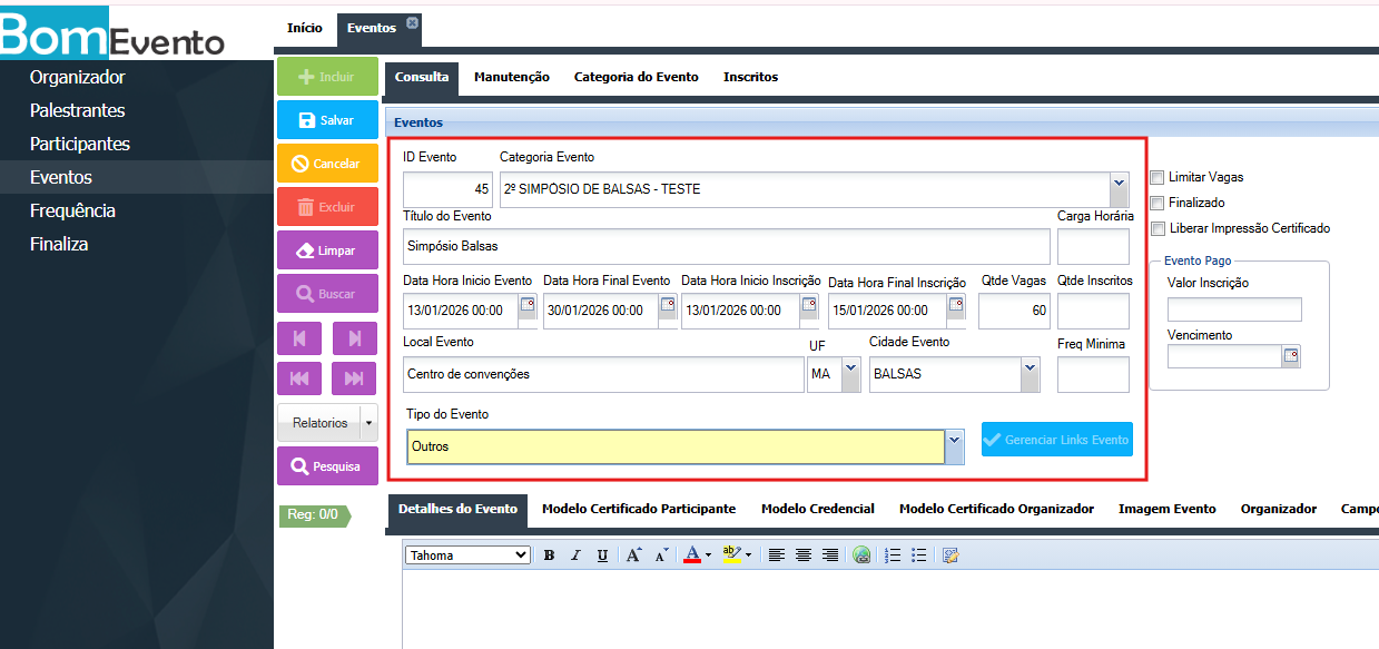 Tutorial Resumido – Cadastro e Gestão de Eventos (BOM EVENTO)