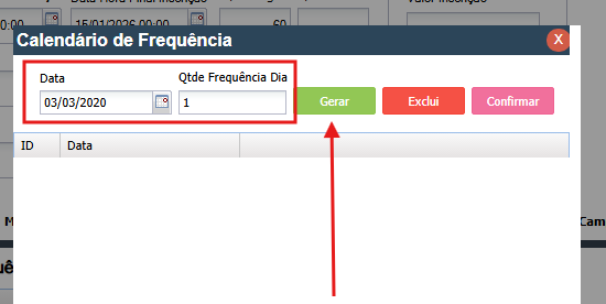 7 - Defina data e horário para registro da frequência. Colocando os dados selecione a opção GERAR. .