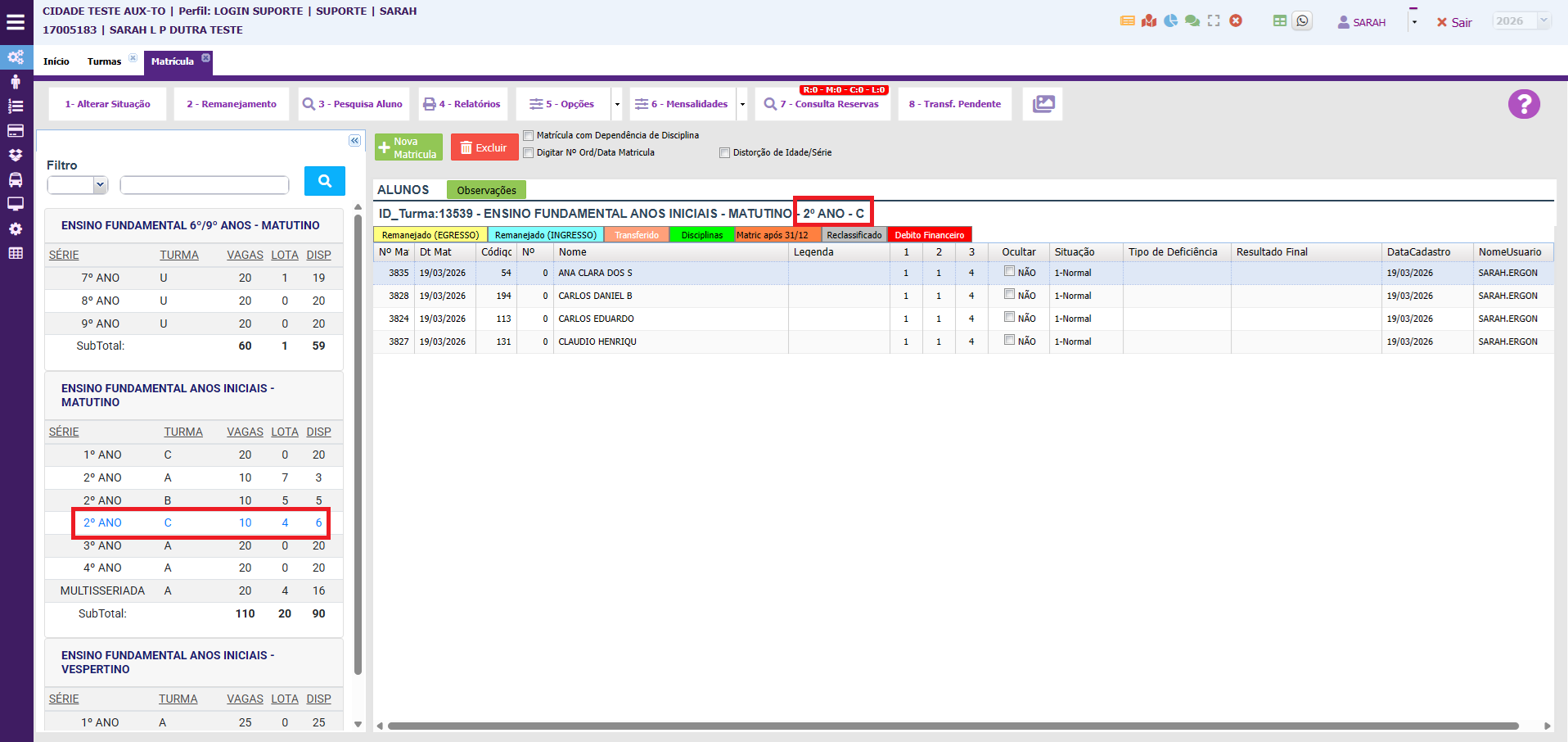 Como recalcular a lotação da turma - corrigir quantidade de alunos matriculados