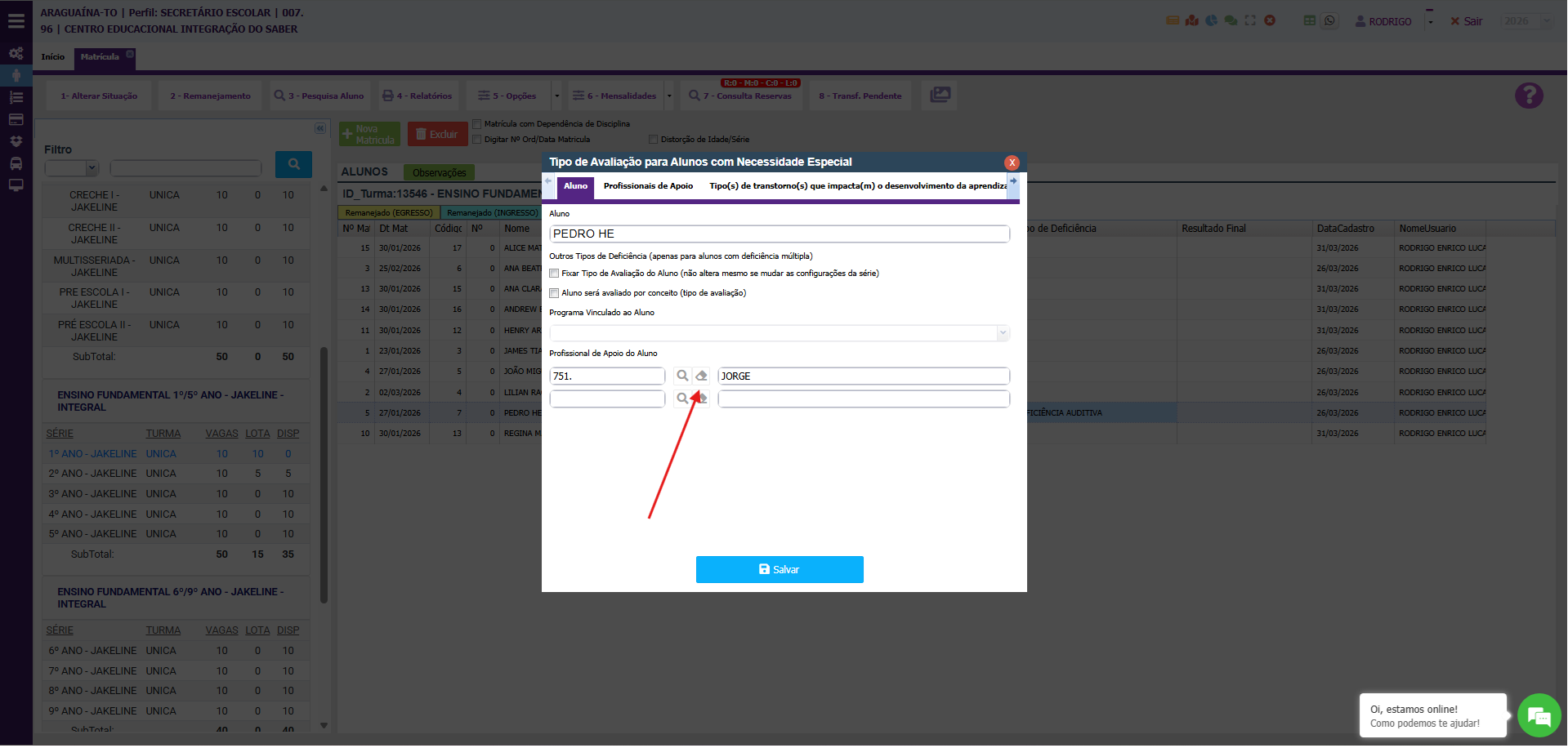 Neste artigo você aprenderá como inserir, alterar ou remover o profissional de apoio do aluno.