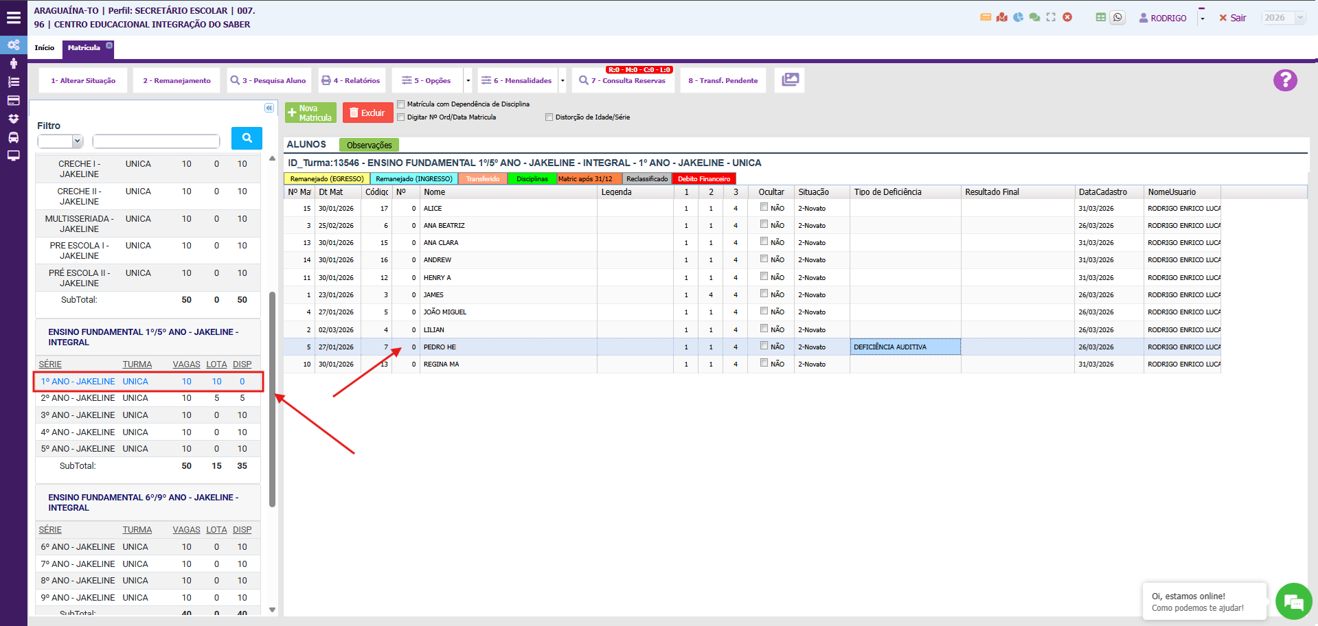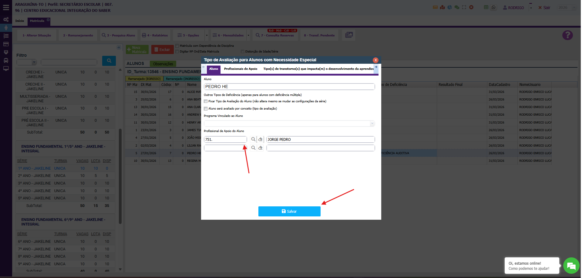 Caso precise realizar o processo de cadastrar o profissional ou inserir a deficiência do aluno, clique no link abaixo para acessar o passo a passo.