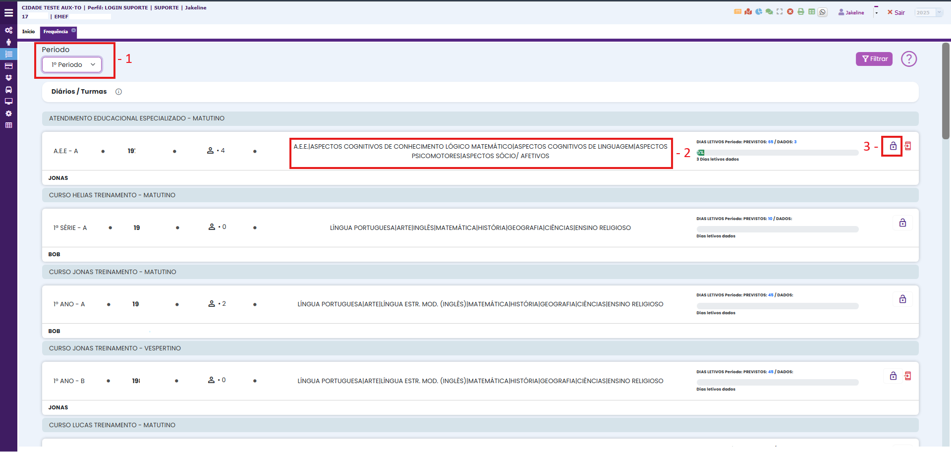 2. Após abrir a frequência faça a seguinte situação:
