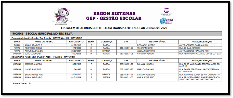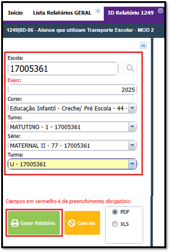 5 - Ao gerar o relatório, o sistema exibirá o arquivo, que