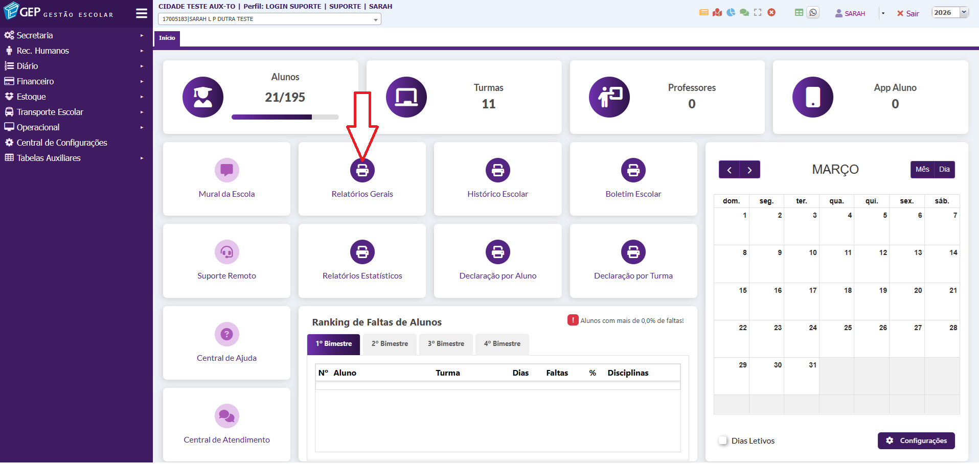 1 - Ao acessar o sistema, na tela inicial, selecione o módulo RELATÓRIOS GERAIS!