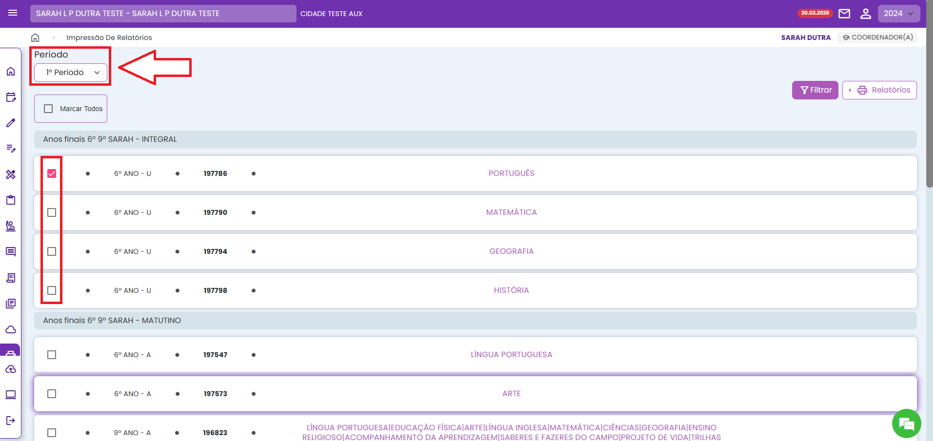 2. Selecione o bimestre e marque os diários que você deseja imprimir.