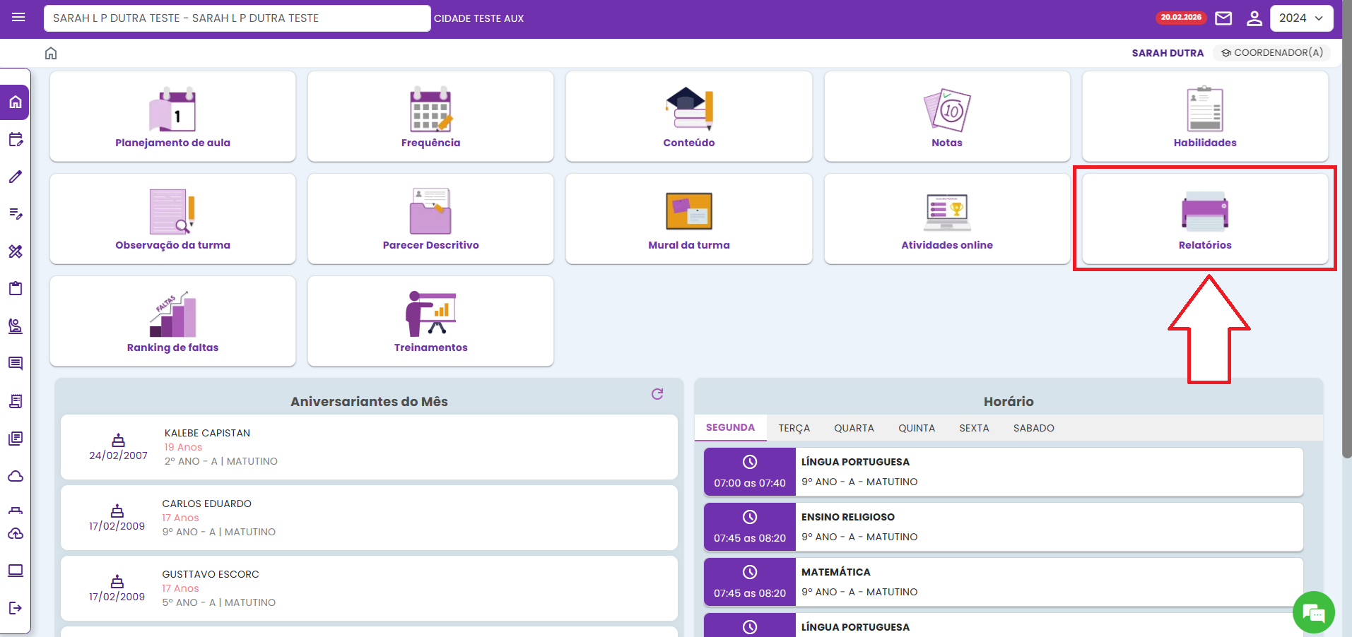 1. Na tela inicial do sistema, clique no botão RELATÓRIOS.