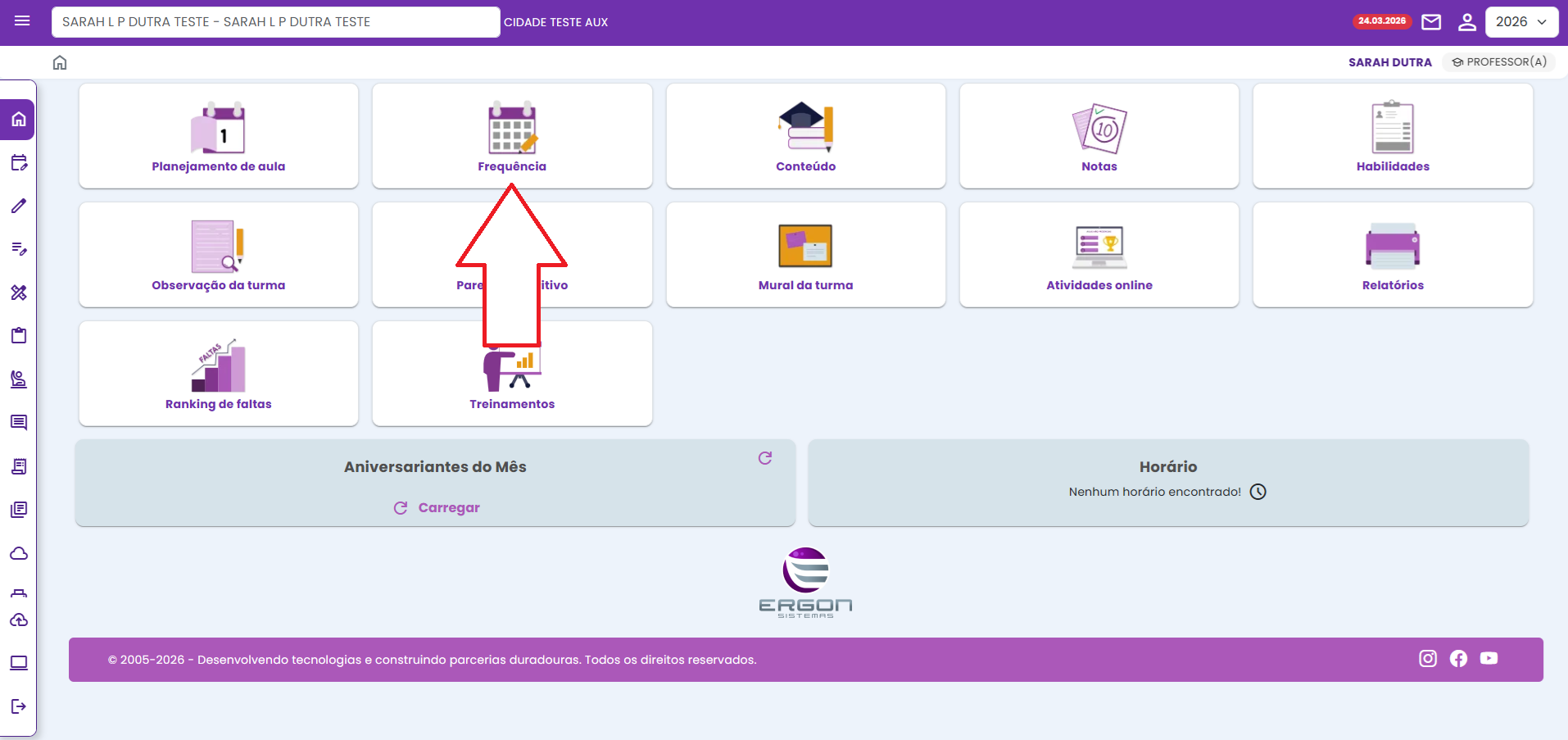 Para realizar a inclusão de uma nova aula, acesse o módulo de frequência,