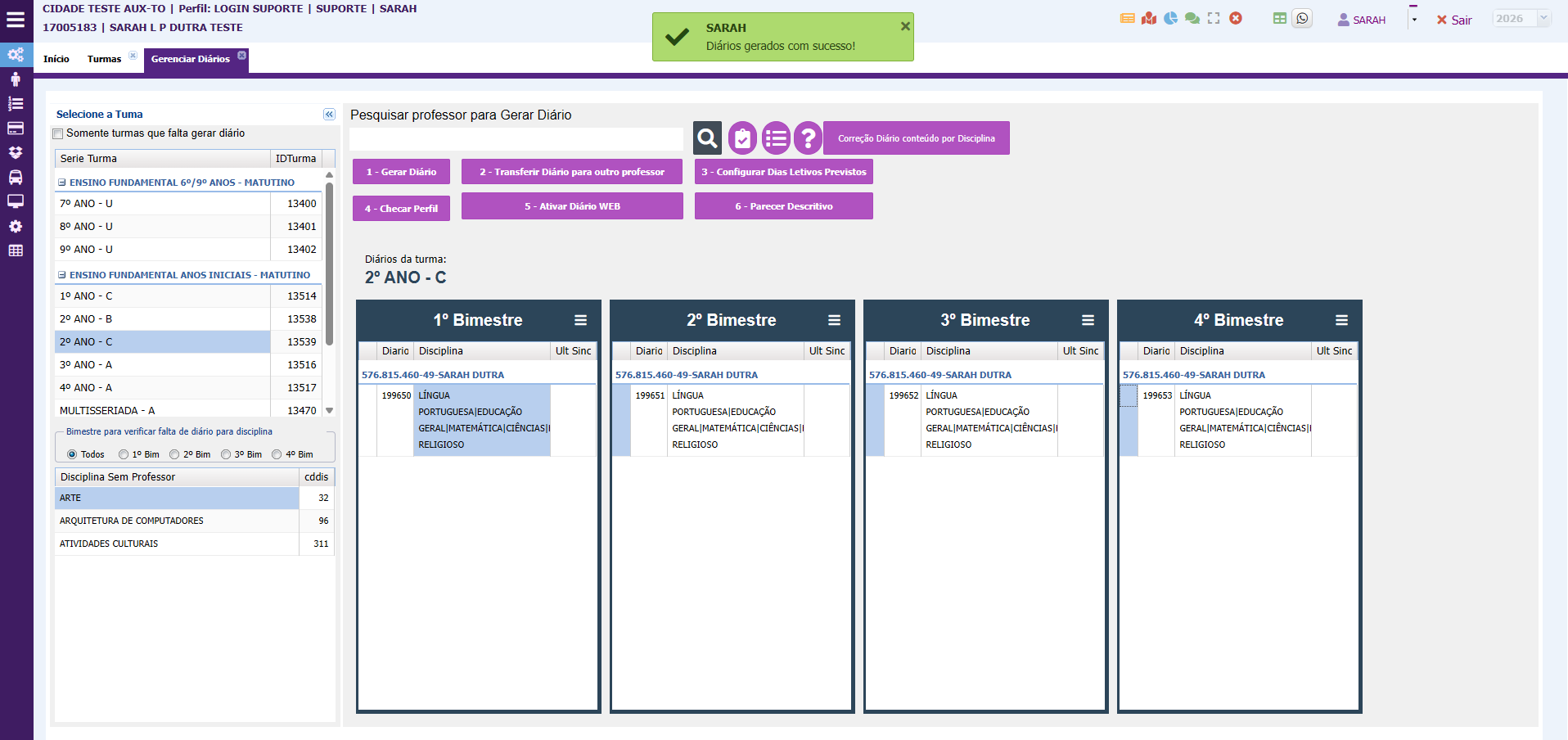 DIÁRIOS GERADOS COM SUCESSO!!!