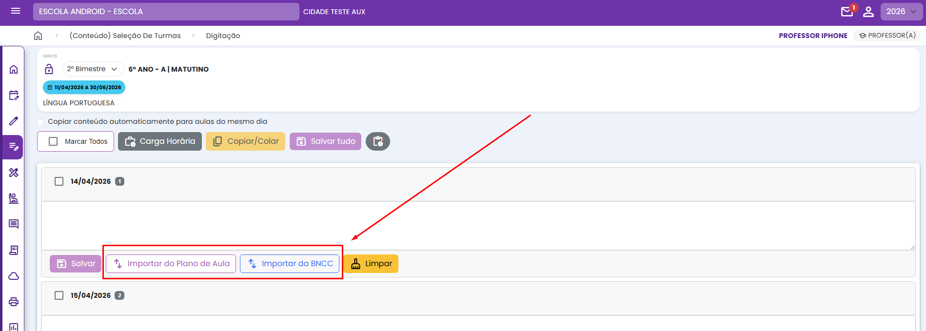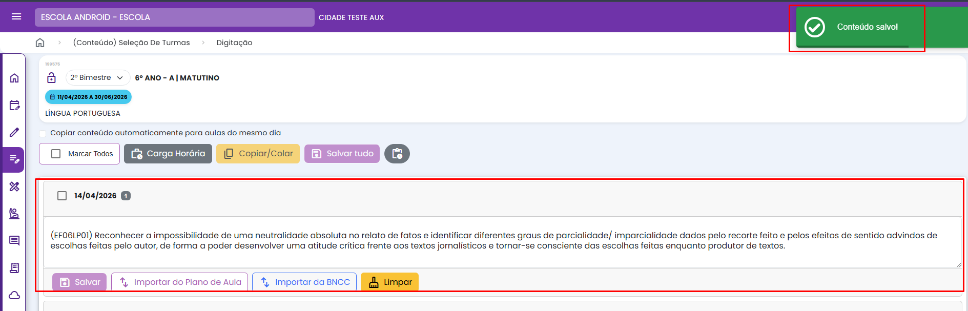 Importar conteúdo do planejamento de aula ou da BNCC