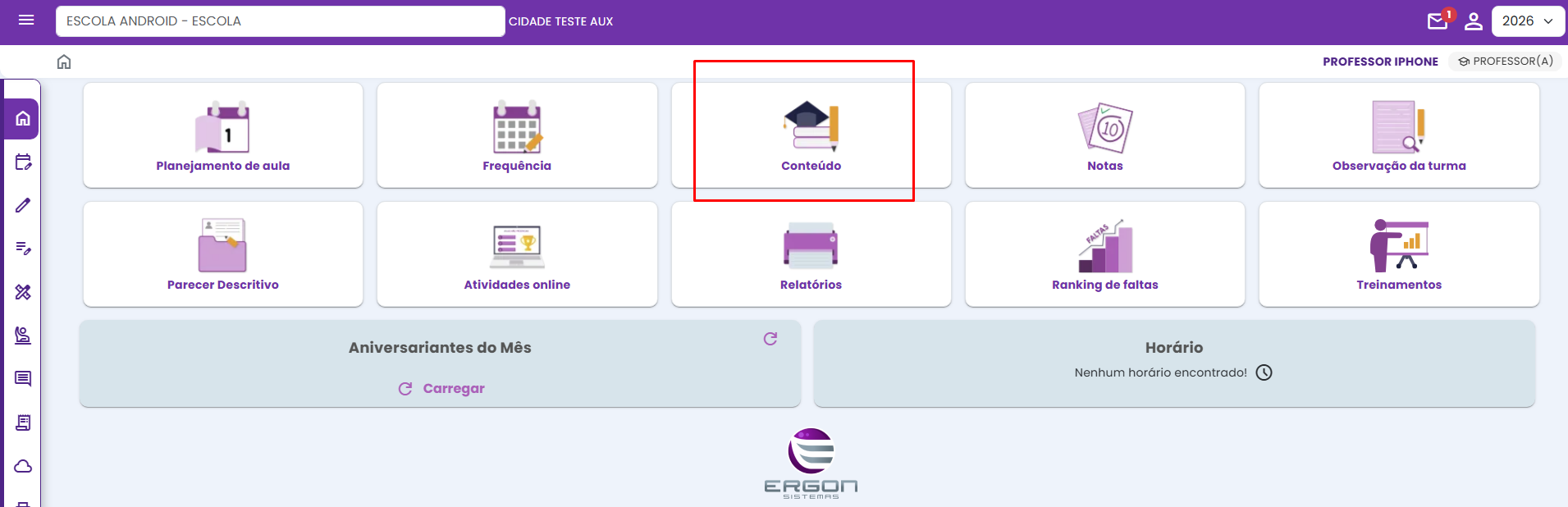 1. Clique no módulo conteúdos;