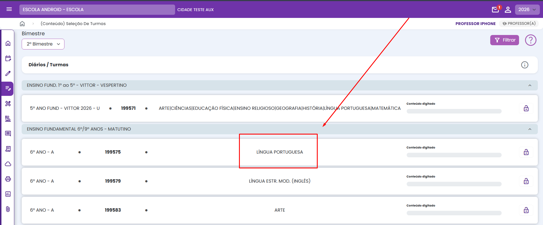 2. Selecione a Turma;