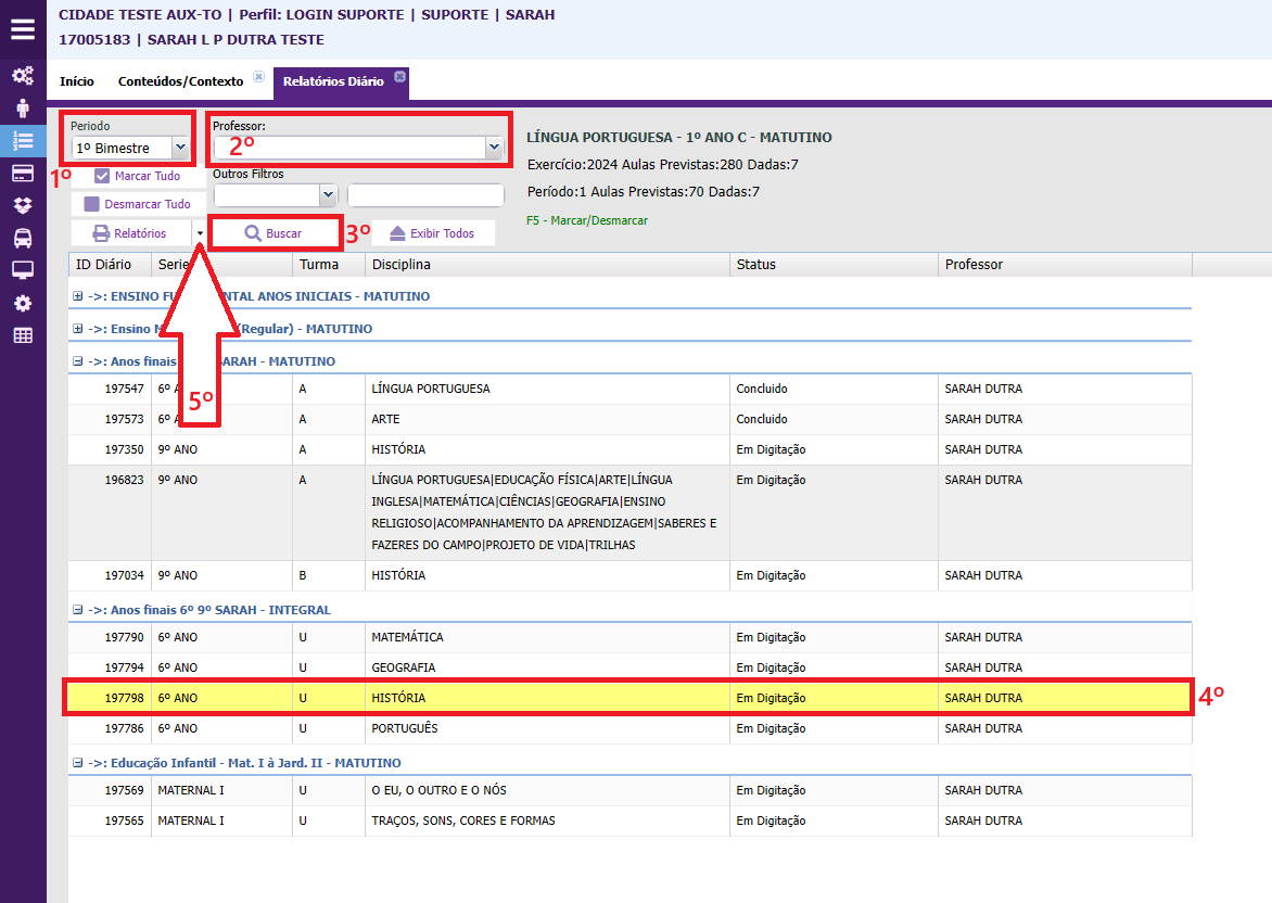 2º - Se desejar, você pode filtrar o professor. Depois, clique em BUSCAR;