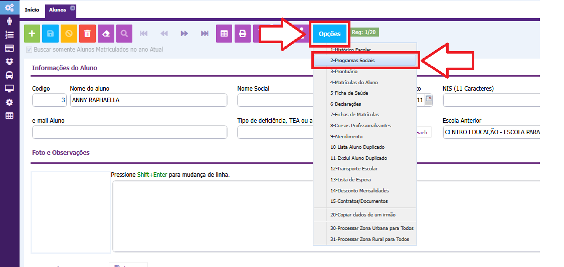 Este tutorial traz em seu conteúdo um passo a passo de como inserir os programas sociais no cadastro do aluno.