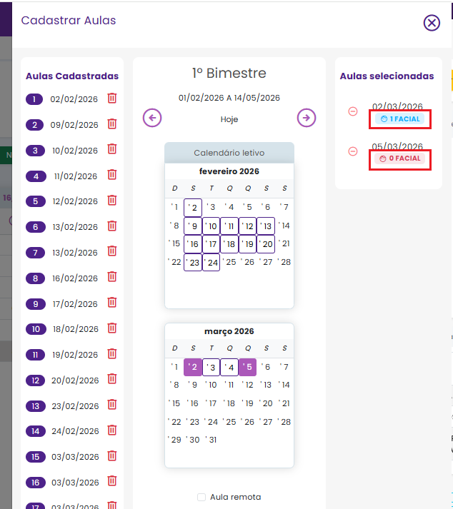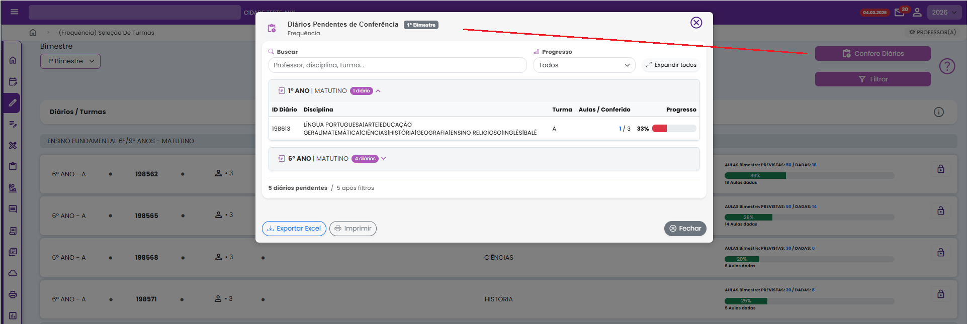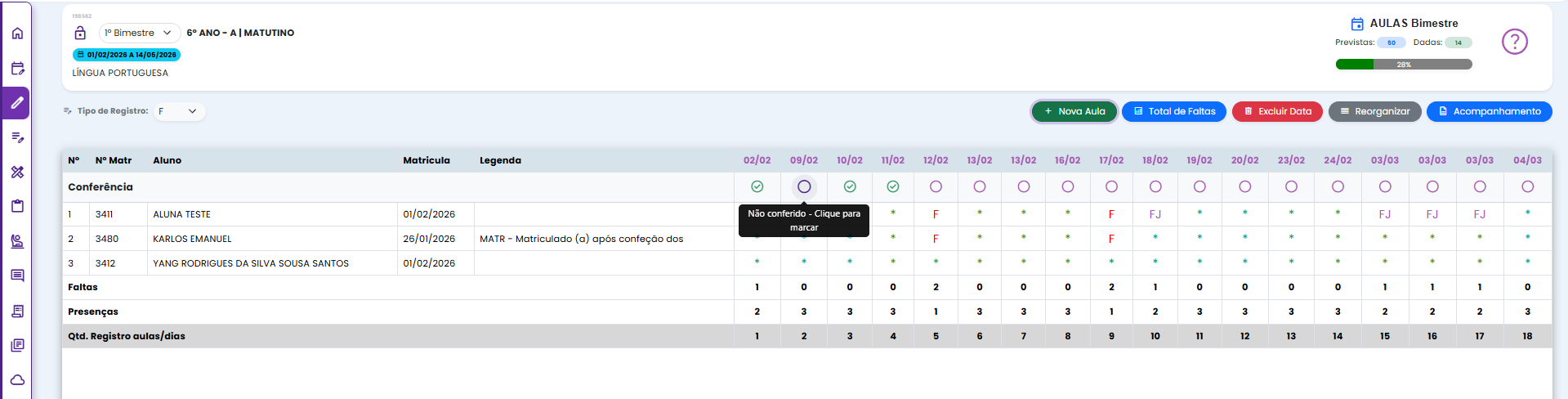 - Nova opção de reorganização do diário, para caso tenha datas de frequência lançadas fora de ordem.
