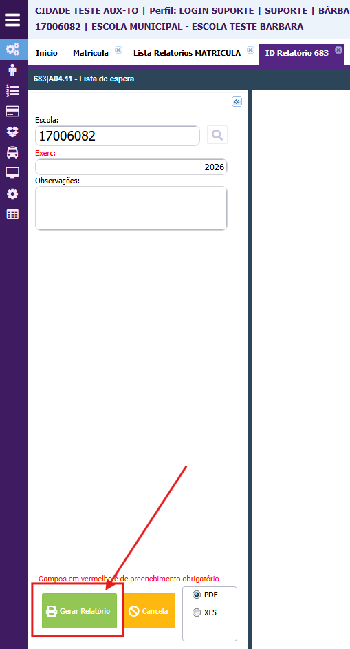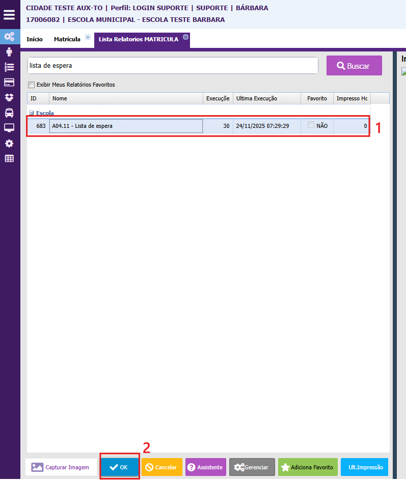 Saiba como verifica a lista dos alunos que estão na lista de espera utilizando o relatório abaixo;