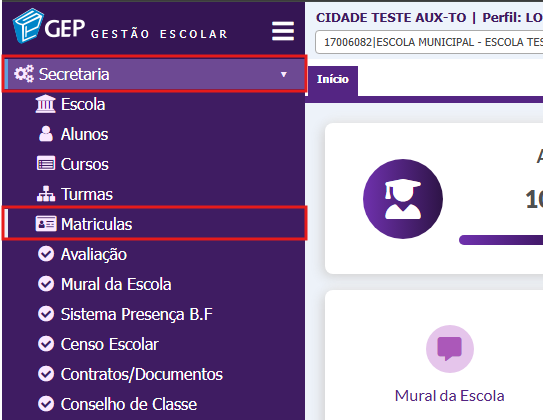 1. Para realizar a impressão do relatório no menu secretaria acesse o módulo de matrículas;