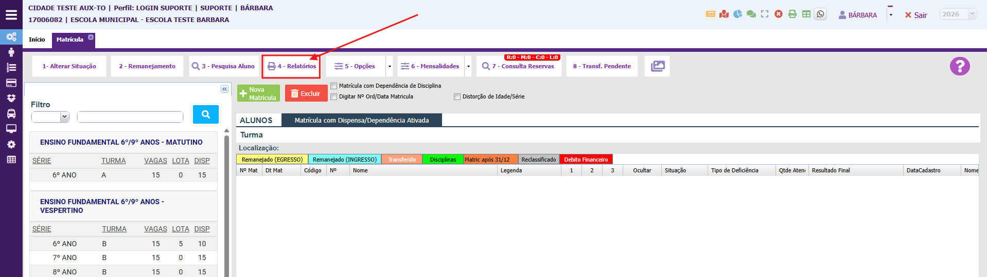 2. Clique no botão (relatórios);