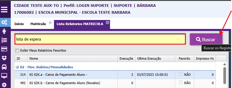 3. Para pesquisar o relatório digite no campo de pesquisa ("Lista de espera") e clique em Buscar;