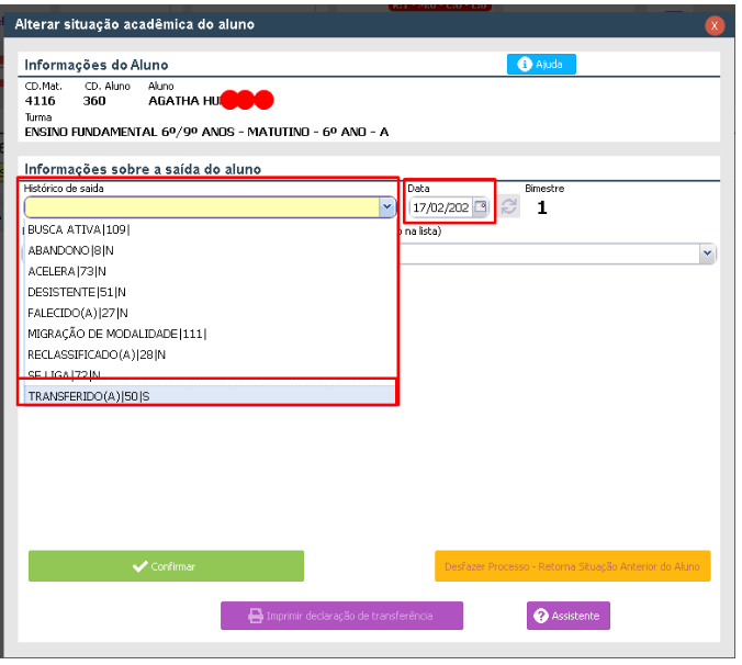1º - Selecione o Histórico sendo ele (Transferido(a));