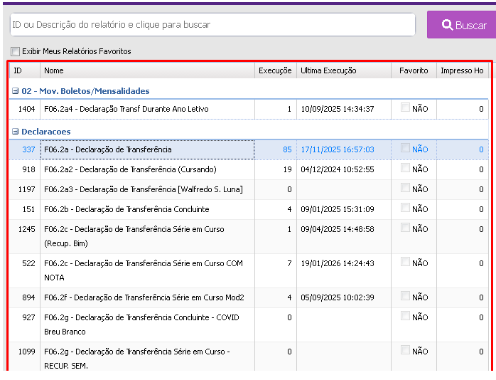 6. Selecione o relatório de declaração ideal para sua transferência e clique em OK, assim o relatório será gerado.