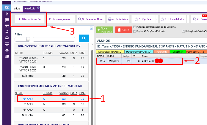 2. Após ter aberto as matriculas, siga os passos abaixo para dar continuidade no processo: