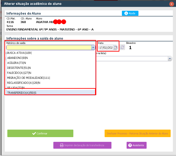 1º - Selecione o Histórico sendo ele (Transferido(a));