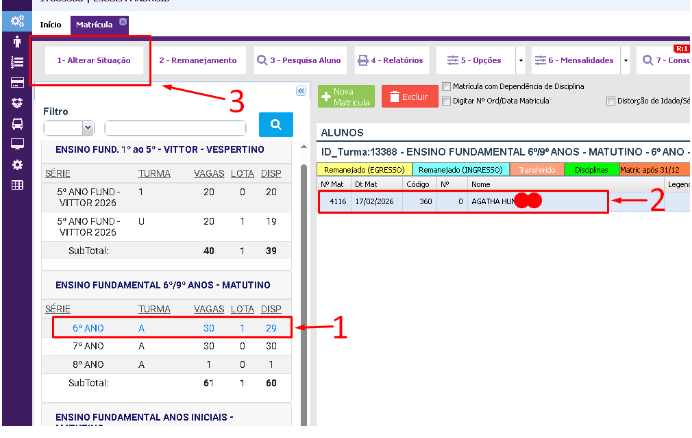 2. Após ter aberto as matrículas, siga os passos abaixo para dar continuidade no processo: